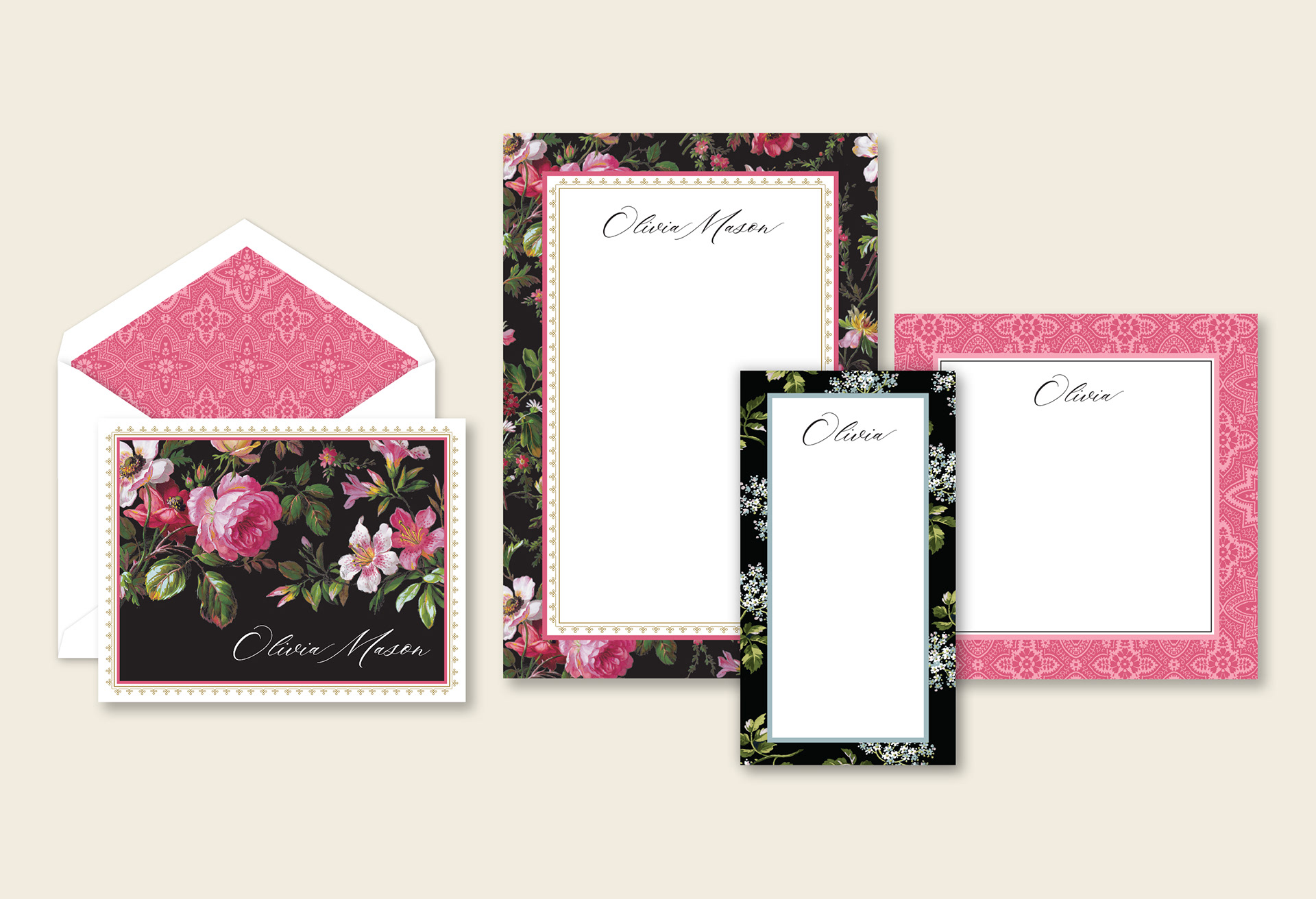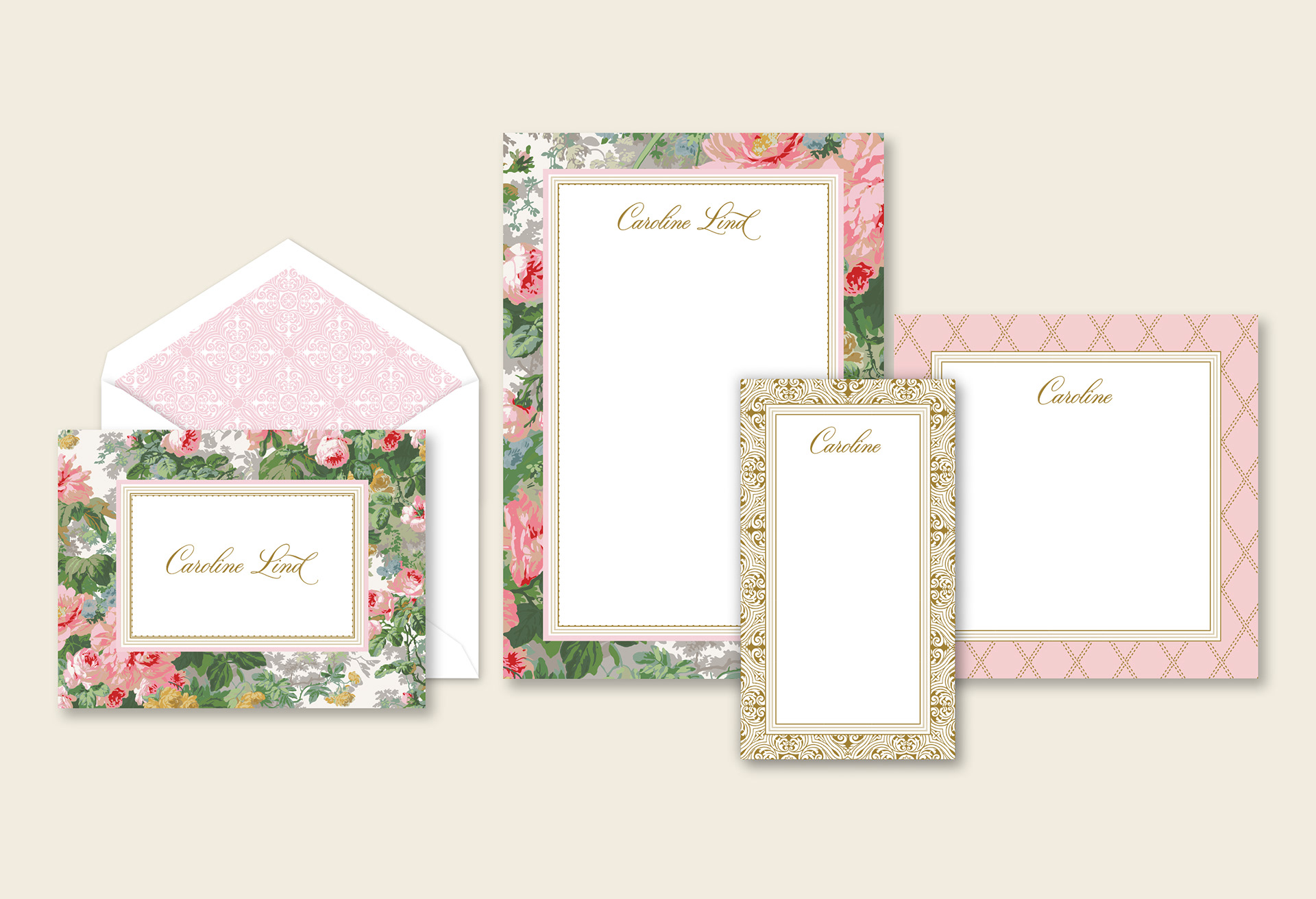 Designed for Anna Griffin, Inc. personalized stationery collections. The notecards and pads sets are sold through retail shops and online stationery sites.
